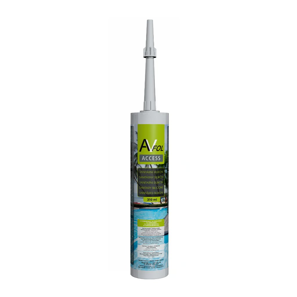AVfol silikon v bílé barvě slouží k utěsnění a zakončení detailů v bazénovém prostředí. Vytváří pevný a zároveň pružný spoj, který dlouhodobě odolává působení vody i bazénové chemie.