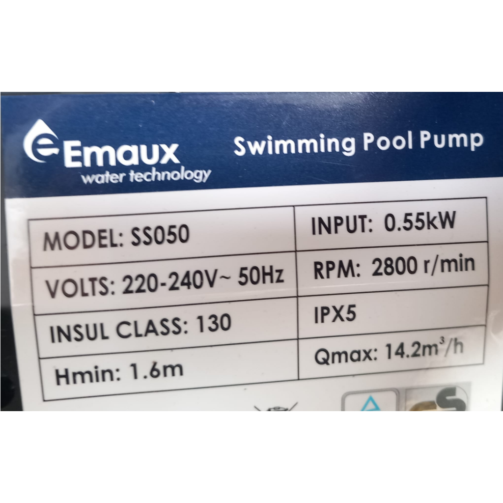 Čerpadlo Emaux SS050 je vyrobeno z kvalitního a odolného plastu, který zajišťuje dlouhou životnost a vysokou odolnost vůči korozi i bazénové chemii. Díky samonasávací schopnosti je možné jeho instalace i nad úroveň hladiny vody (doporučujeme max. cca 1–1,5 m).