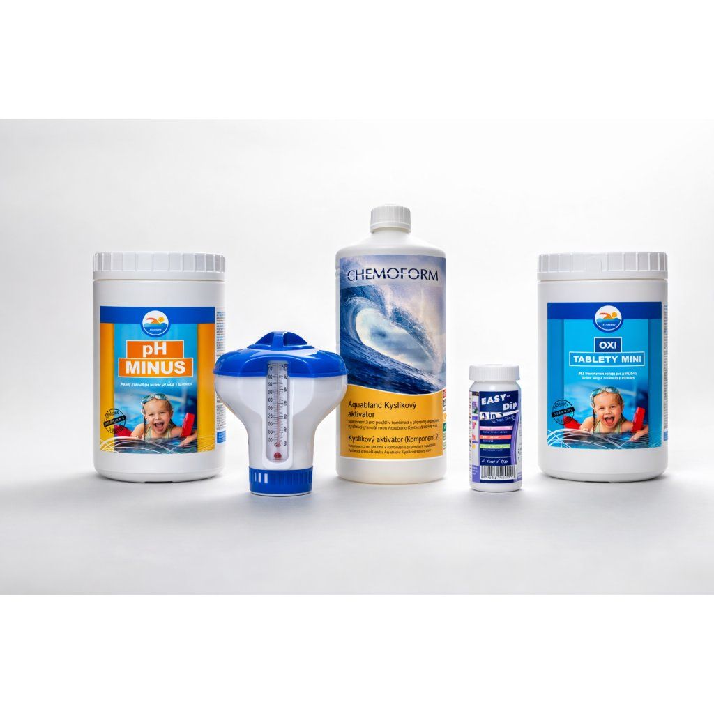 Produkty v sadě jsou vhodné především pro zařízení s menším objemem vody a vyšší teplotou, kde je pravidelná údržba vody obzvlášť důležitá. Aktivní kyslík společně s aktivátorem zajišťuje účinnou dezinfekci a pomáhá udržovat stabilní kvalitu vody během celé koupací sezóny.