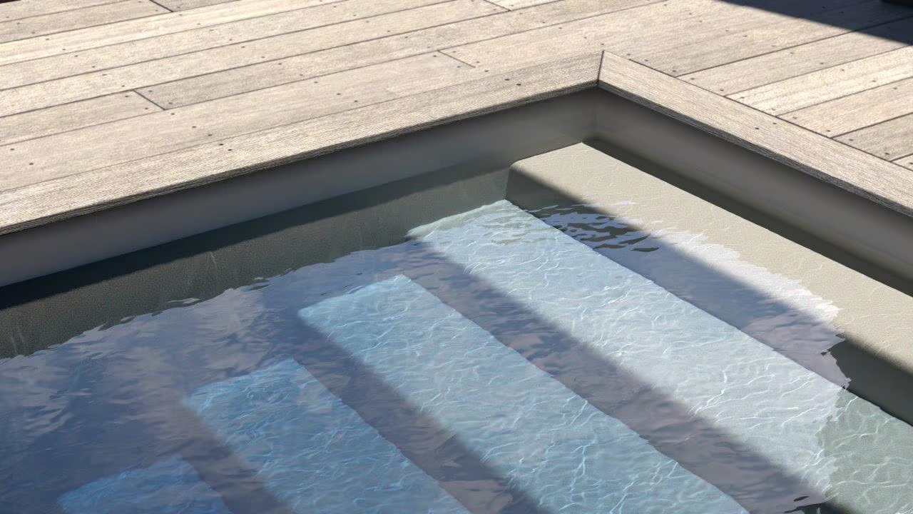 The light grey shade of the liner gives the water a fresh and clean look. The color appears natural, does not fade over time and maintains its attractive tone for many years.