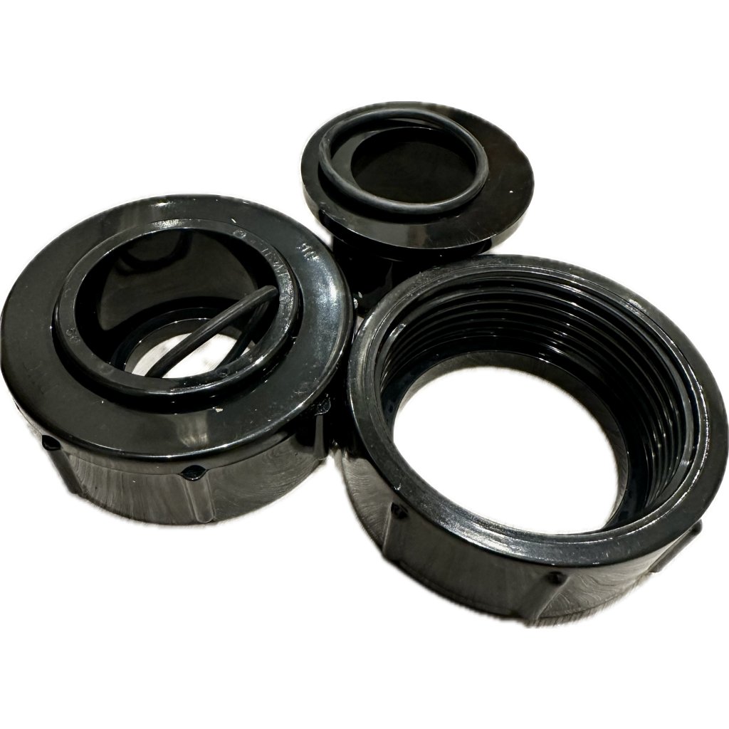 The unions can be installed quickly onto standard 50 mm PVC plumbing using common PVC adhesive. The set includes 2 complete unions – nut, adapter and gasket.