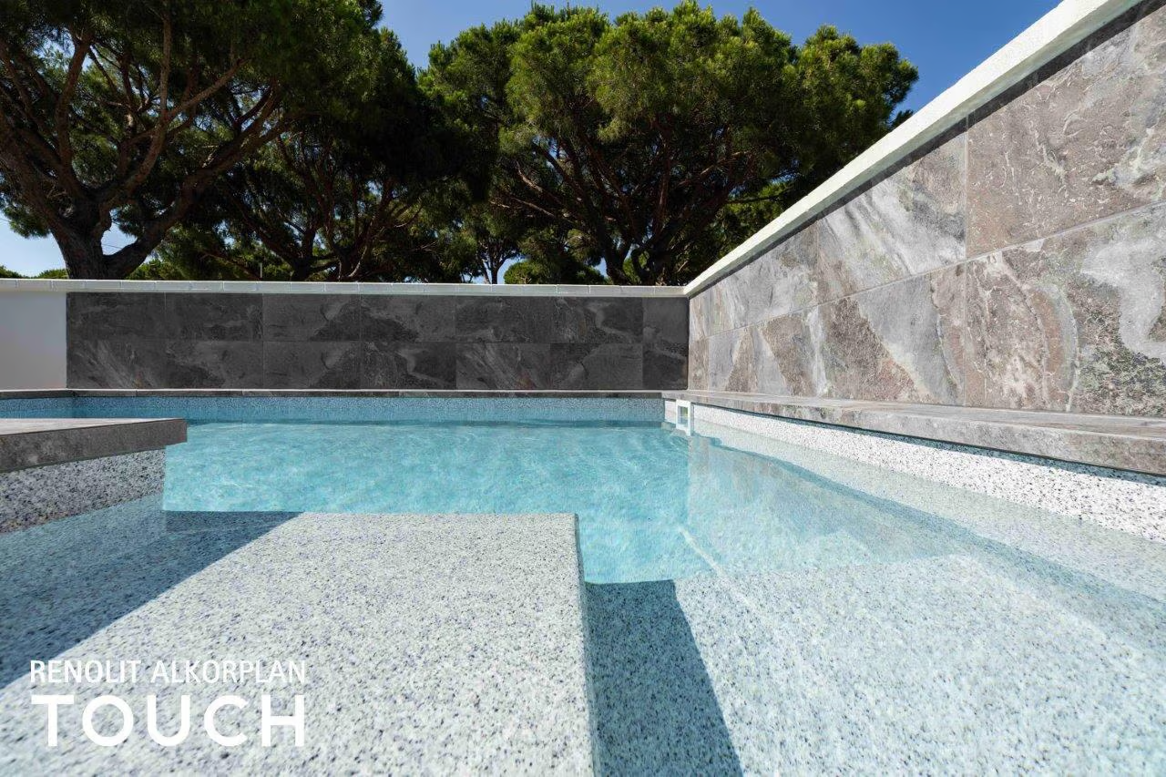 Bazénová fólie ALKORPLAN TOUCH Origin představuje prémiovou řadu bazénových fólií s reliéfní 3D strukturou, která dodává bazénu elegantní a přirozený vzhled. Díky tomu působí voda luxusně, čistě a velmi atraktivně.