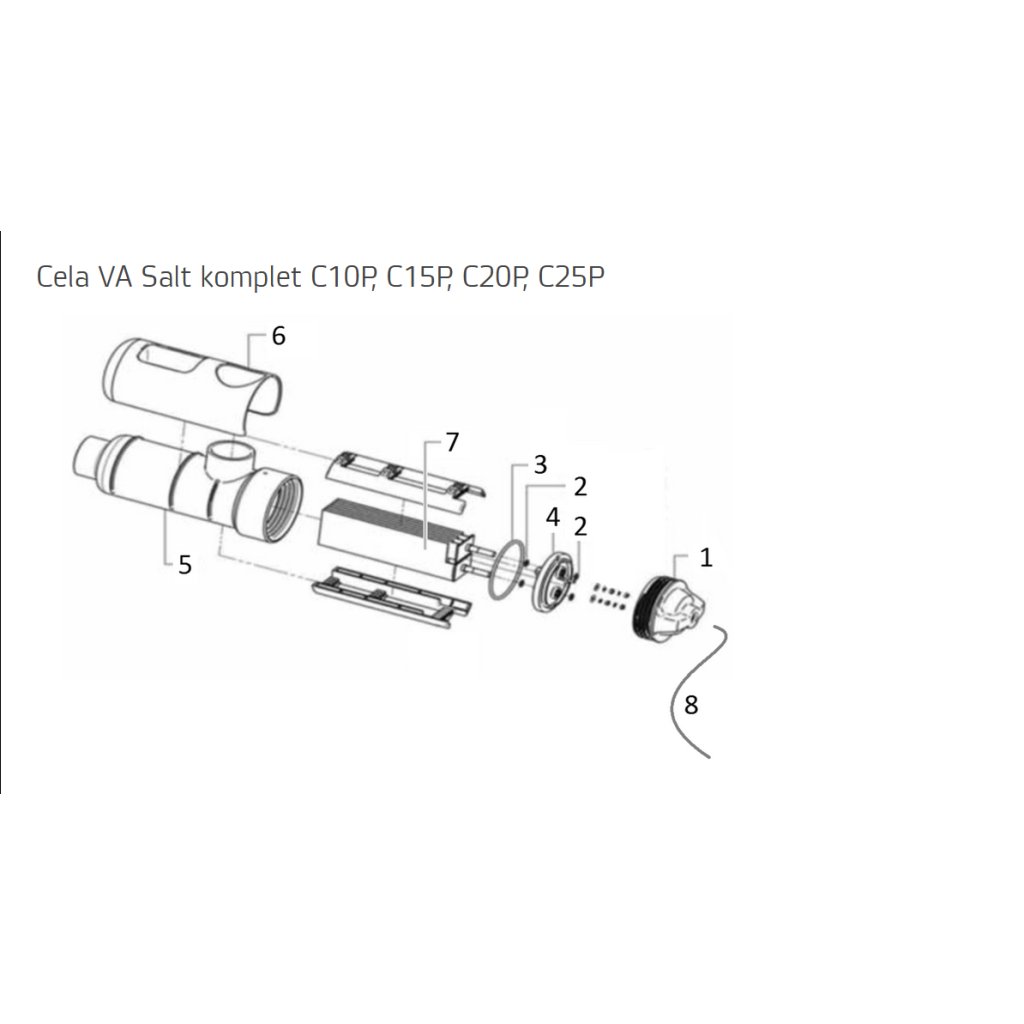 Obal přesně pasuje na modely VA Salt, Smart a výkonové varianty CP08, CP10, CP15, CP20 a CP25. Při výměně si ověř typ svého zařízení a objednej případné doplňky (těsnění, šroubení) zvlášť.