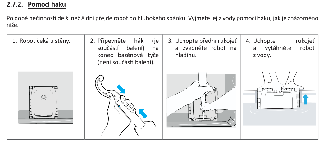 - Hák pro snadné vyjmutí robota z vody (je potřeba dokoupit tyč)