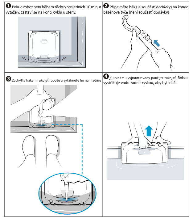 - Hák pro snadné vyjmutí robota z vody (je potřeba dokoupit tyč)